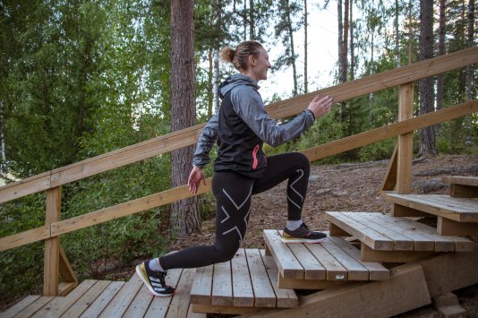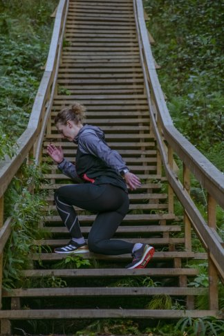 Vinkki! Voit tehdä portaissa myös lihaskuntoa esimerkiksi erilaisia kyykkyjä ja voimaa myös ylävartaloon, tee punnerrukset aina portaiden yläpäässä. Tsemppiä treeneihin!