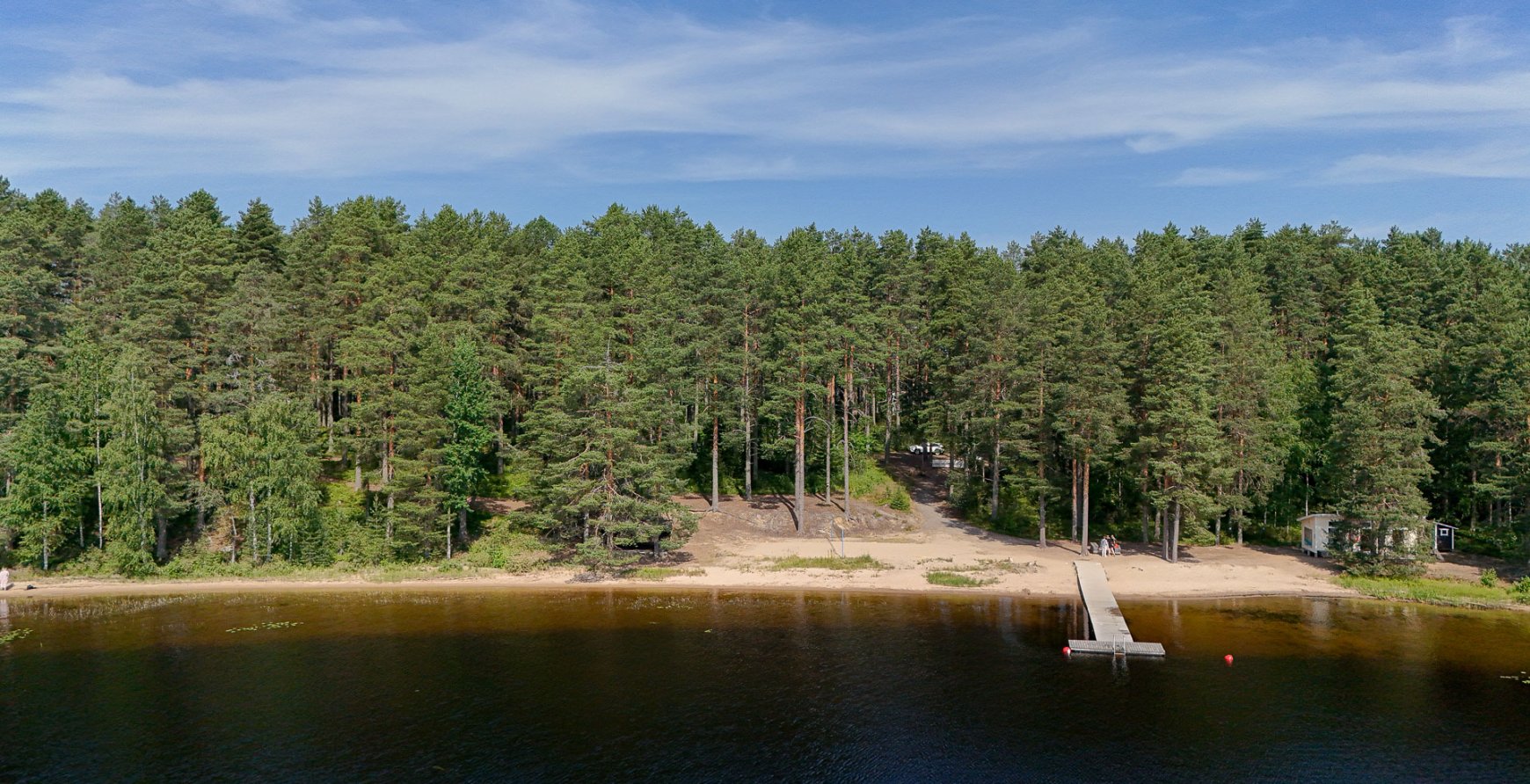 Rannalta löytyvät pukukopit, grillikatos ja laituri. Auton saa jätettyä aivan lähelle rantaa.