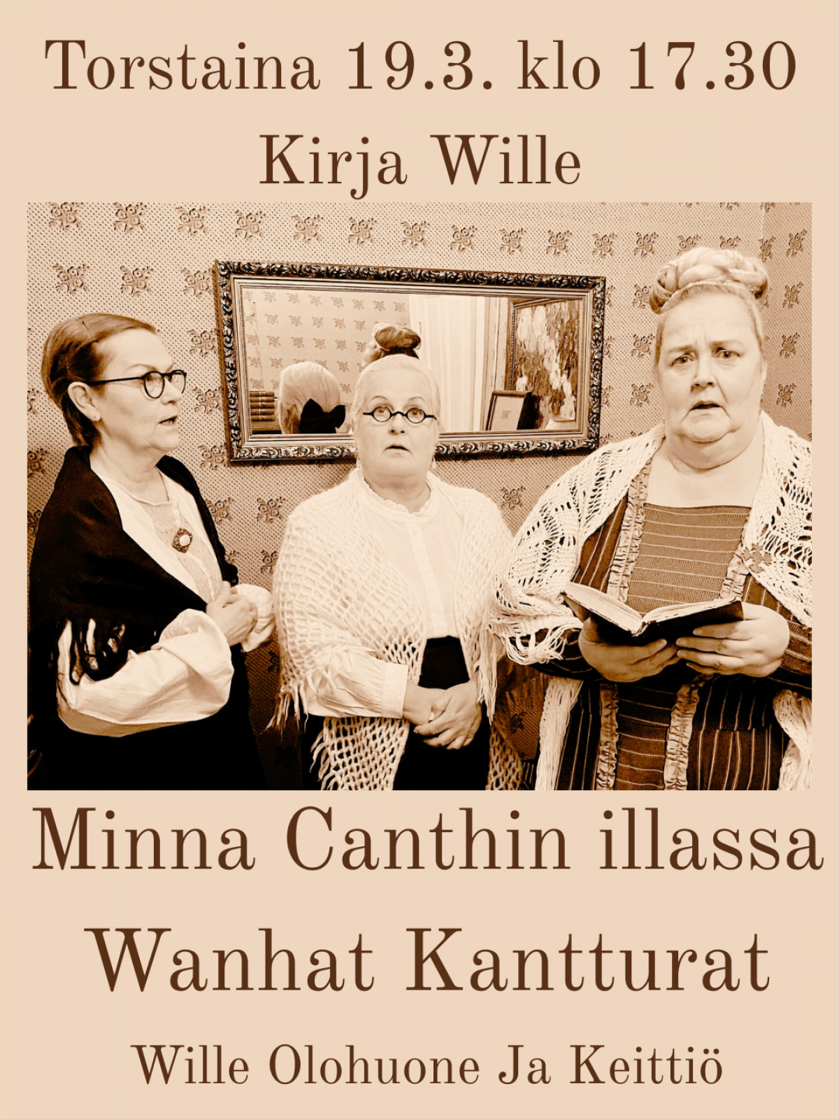 Tervetuloa viettämään tunnelmallista kirjailtailtaa Kirja Wille -tapahtumaan torstaina 19.3., jolloin sukelletaan Minna Canthin elämään ja tuotantoon.
